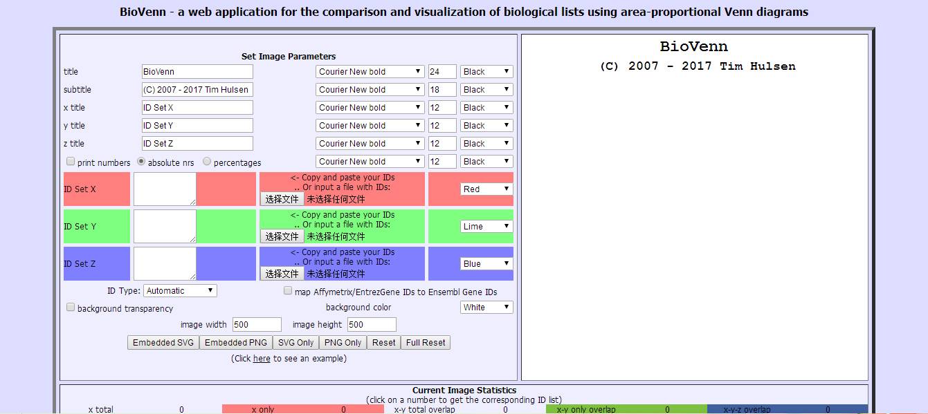網(wǎng)址:http://bioinfogp.cnb.csic.es/tools/venny/index.html