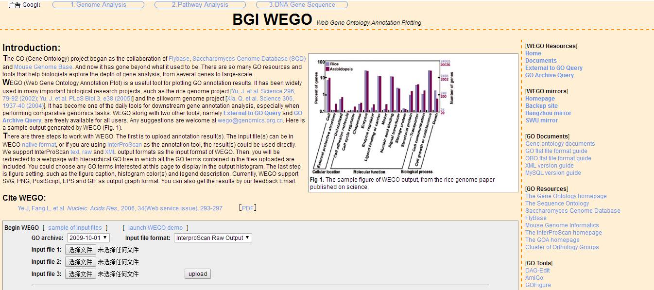 網(wǎng)址:http://wego.genomics.org.cn/cgi-bin/wego/index.pl