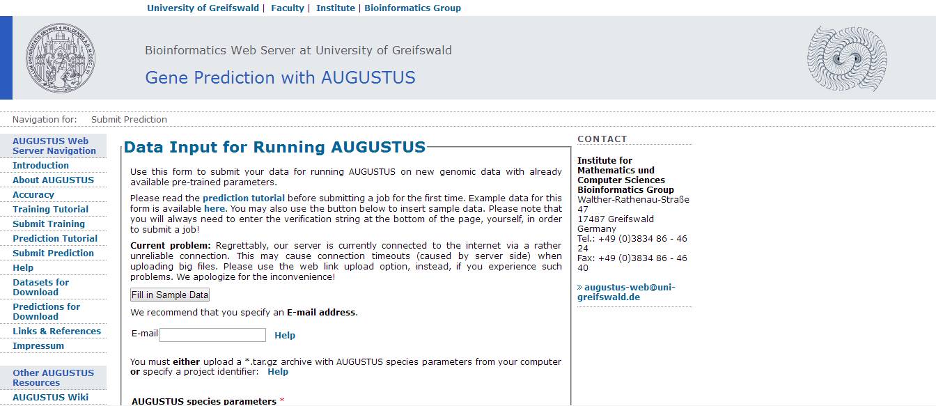 網(wǎng)址:http://bioinf.uni-greifswald.de/webaugustus/prediction/create