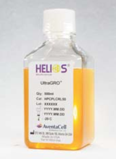Helios UltraGRO?是AventaCell BioMedical 旗下Helios品牌系列產(chǎn)品,因富含多種生長因子和細胞因子而作為細胞營養(yǎng)添加物,可替代胎牛血(FBS)、自體血漿。Helios UltraGRO? 細胞培養(yǎng)補充劑是一種非異源、不含動物血清,需要肝素的培養(yǎng)基補充劑,用于替代胎牛血清,可用于臨床試驗或商業(yè)用途的細胞擴增。