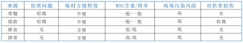 目前間充質(zhì)干細(xì)胞主要從骨髓、脂肪、臍帶血及臍帶中獲得。幾種來(lái)源的主要區(qū)別如下: