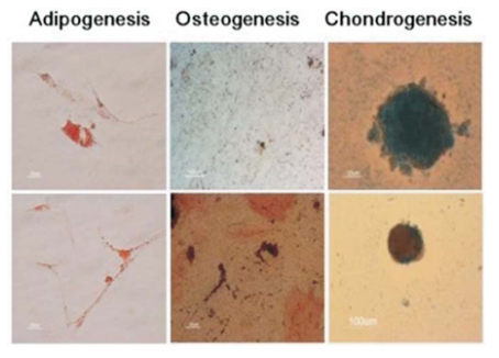 間充質(zhì)干細(xì)胞在體外特定的誘導(dǎo)條件下,可分化為脂肪、軟骨、骨、肌肉、肌腱、神經(jīng)、肝、心肌、胰島β細(xì)胞和內(nèi)皮等多種組織細(xì)胞,連續(xù)傳代培養(yǎng)和冷凍保存后仍具有多向分化潛能。不論是自體還是同種異源的間充質(zhì)干細(xì)胞,一般都不會(huì)引起宿主的免疫反應(yīng)。