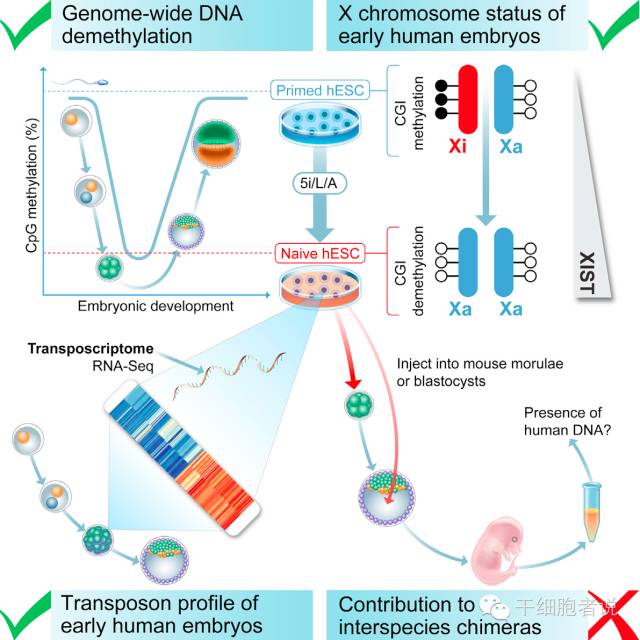 后,第四個標準是女性原始態(tài)細胞中X染色體的表觀遺傳狀態(tài),其與人類植入前胚胎相似。