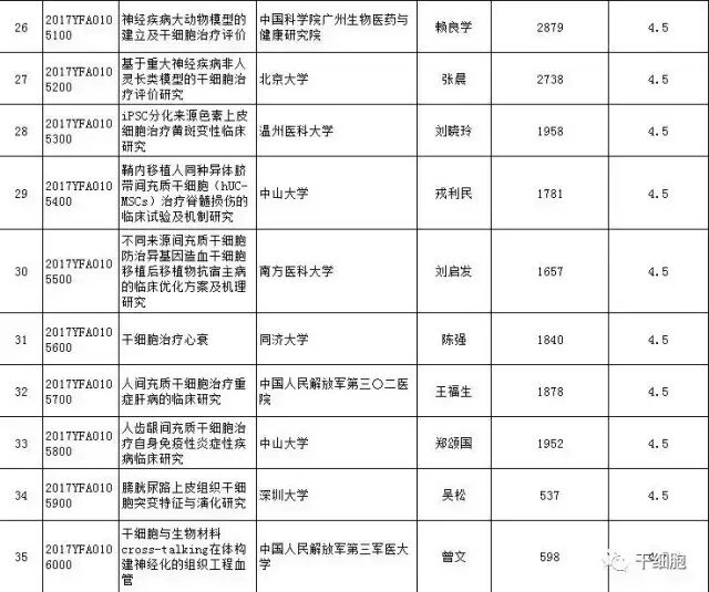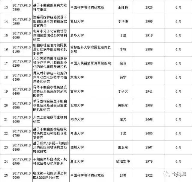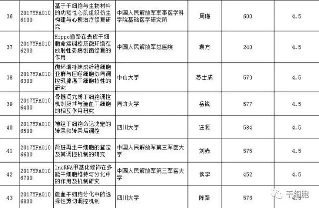 科技部:9.4億!“干細胞及轉化研究”國家重點研發(fā)計劃2017年度擬立項項目公示清單